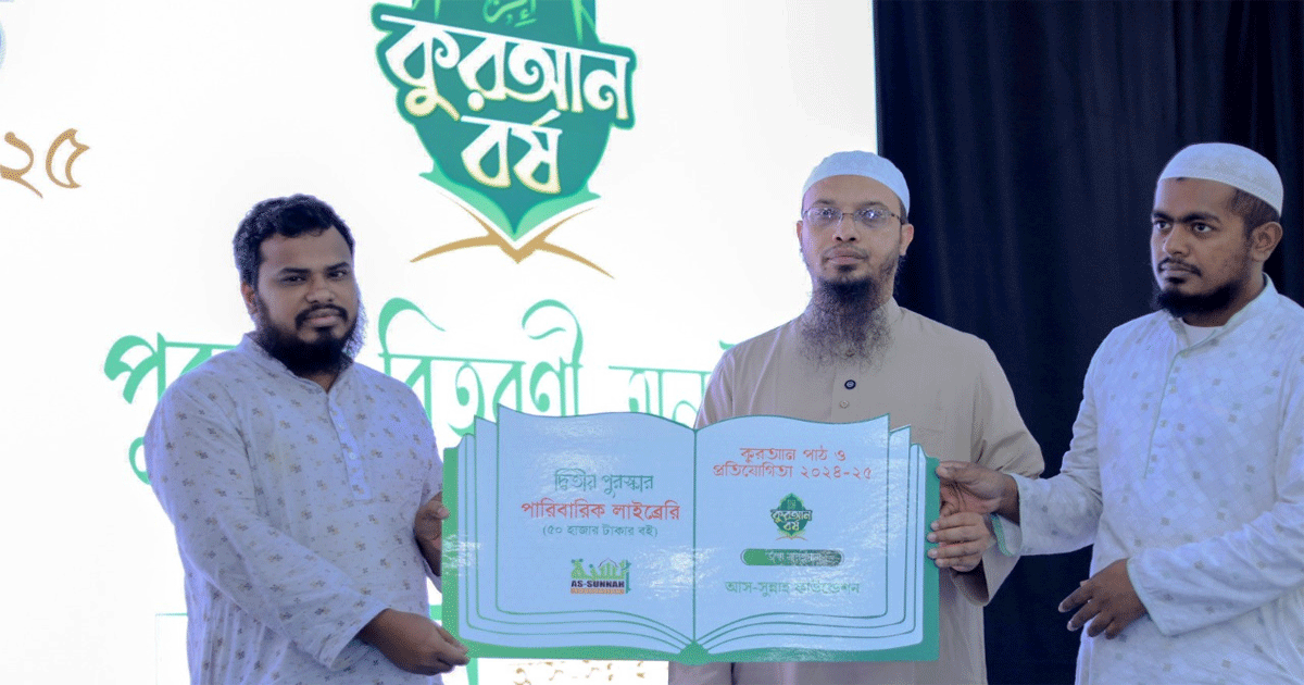 আস-সুন্নাহ ফাউন্ডেশন আয়োজিত বছরব্যাপী কোরআন পাঠ ও প্রতিযোগিতার চূড়ান্ত পর্বের পুরস্কার বিতরণ অনুষ্ঠান সম্পন্ন হয়েছে। শনিবার (১৮ অক্টোবর) সকালে রাজধানীর আস-সুন্নাহ ফাউন্ডেশনের অডিটোরিয়ামে অনুষ্ঠিত হয় এই অনুষ্ঠান।