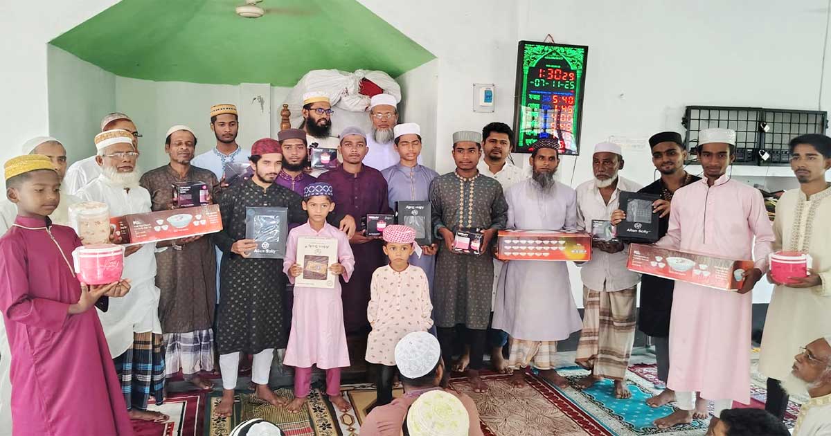 শুক্রবার (৭ নভেম্বর) জুমার নামাজের আগে উপজেলার নাচনাপাড়া ৩নং ওয়ার্ডের হাওলাদার বাড়ি জামে মসজিদে এই পুরস্কার বিতরণ করা হয়।