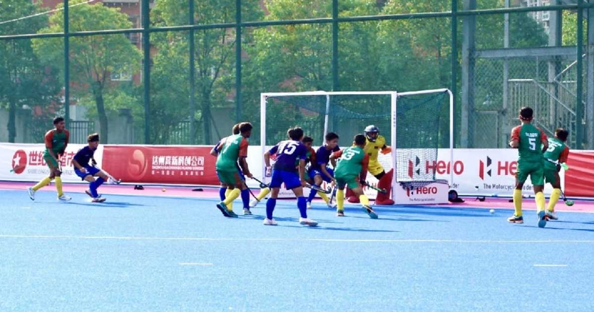 চীনের ডাজুতে প্রথম কোয়ার্টারে ২ গোলের লিড পেয়ে যায় বাংলাদেশ। দ্বিতীয় মিনিটে পেনাল্টি কর্নার থেকে গোলের খাতা খোলেন দ্বীন ইসলাম। ১২ মিনিটে ইসমাইল হোসেন লক্ষ্যভেদ করলে ব্যবধান দ্বিগুণ হয়।