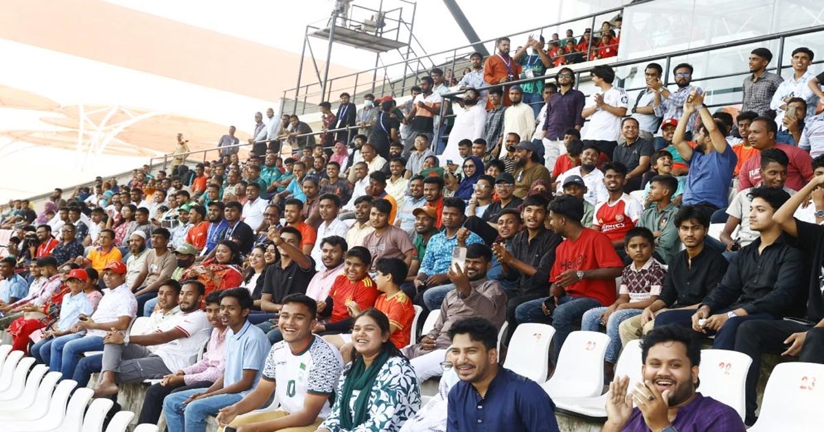 শুক্রবার কিংস অ্যারেনায় শুরু হয়েছে মেয়েদের সাফ অনূর্ধ্ব-২০ ফুটবল চ্যাম্পিয়নশিপ। উদ্বোধনী ম্যাচে শ্রীলংকার বিপক্ষে মাঠে নেমেছিল বাংলাদেশ। যথারীতি প্রতিপক্ষকে গোলবন্যায় ভাসিয়েছে তারা। দর্শক ছিল চোখে পড়ার মতো।