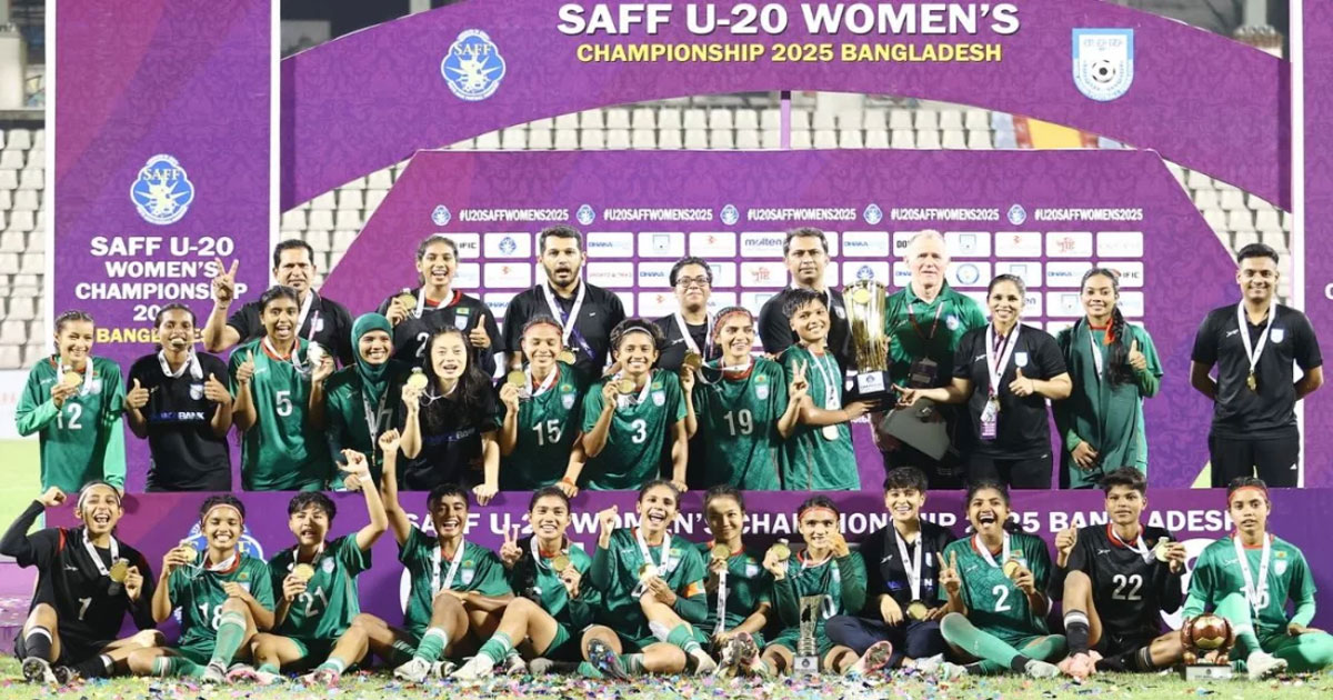 অনূর্ধ্ব-২০ নারী সাফ চ্যাম্পিয়নশিপে অপরাজিত চ্যাম্পিয়ন হয়েছে বাংলাদেশ। অলিখিত ফাইনালে সাগরিকার হ্যাটট্রিকে নেপালকে ৪-০ গোলে হারিয়ে শিরোপা নিজেদের করে নেয় স্বাগতিকরা। চ্যাম্পিয়ন হলেও সেভাবে উল্লাস করেনি বাংলাদেশ দল।