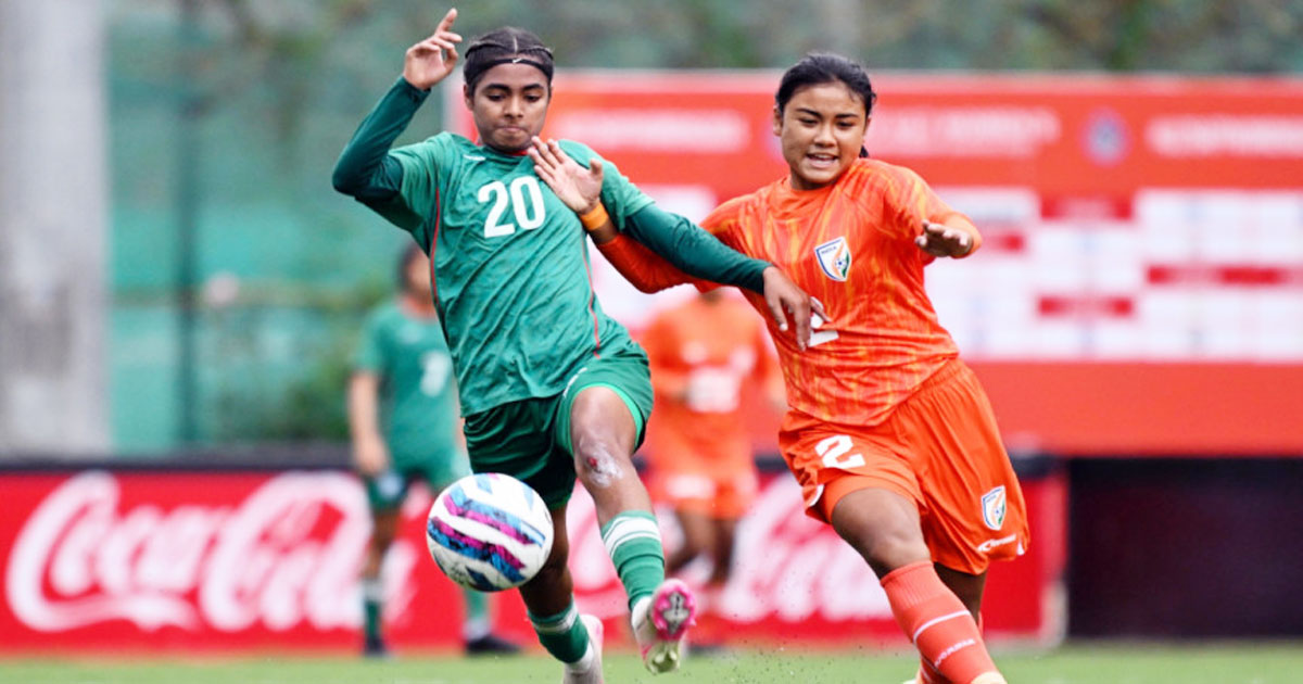 অনূর্ধ্ব-১৭ সাফ চ্যাম্পিয়নশিপে এক ম্যাচ বাকি থাকতেই চ্যাম্পিয়ন হয়েছে ভারত। লিগ পদ্ধতির টুর্নামেন্টে প্রথম ম্যাচে ভারতের বিপক্ষে হেরেই শিরেপার লড়াই থেকে অনেকটা ছিটকে গিয়েছিল বাংলাদেশের মেয়েরা। তাই ফিরতি ম্যাচটি ছিল প্রতিশোধের লড়াই। সেই কাজটি তারা ঠিকভাবেই করেছে। ম্যাচ শেষে তাই উল্লাস করতেও দেখা গেছে বাংলাদেশের মেয়েদের।