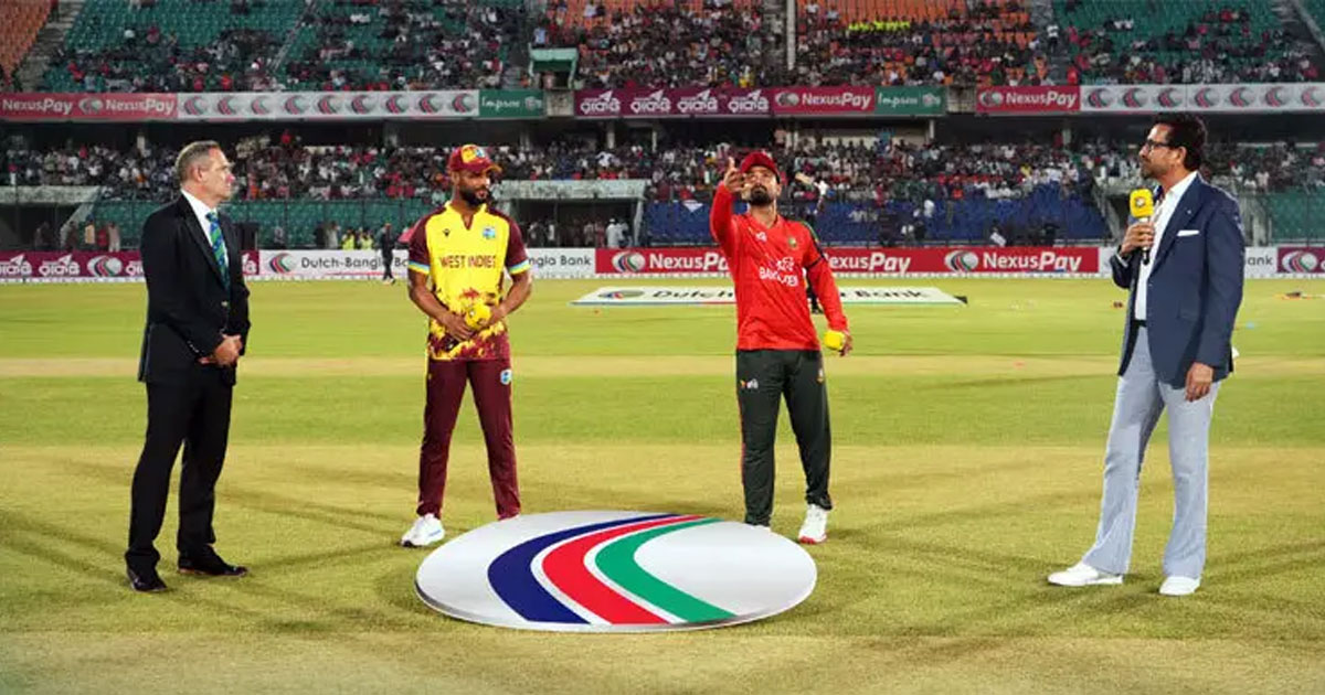 আগের ম্যাচে টস হেরে ফিল্ডিং পেয়েছিল বাংলাদেশ। এবারও সেই ভাগ্য। টস জিতে প্রথমে ব্যাটিং বেছে নিয়েছে ওয়েস্ট ইন্ডিজ।