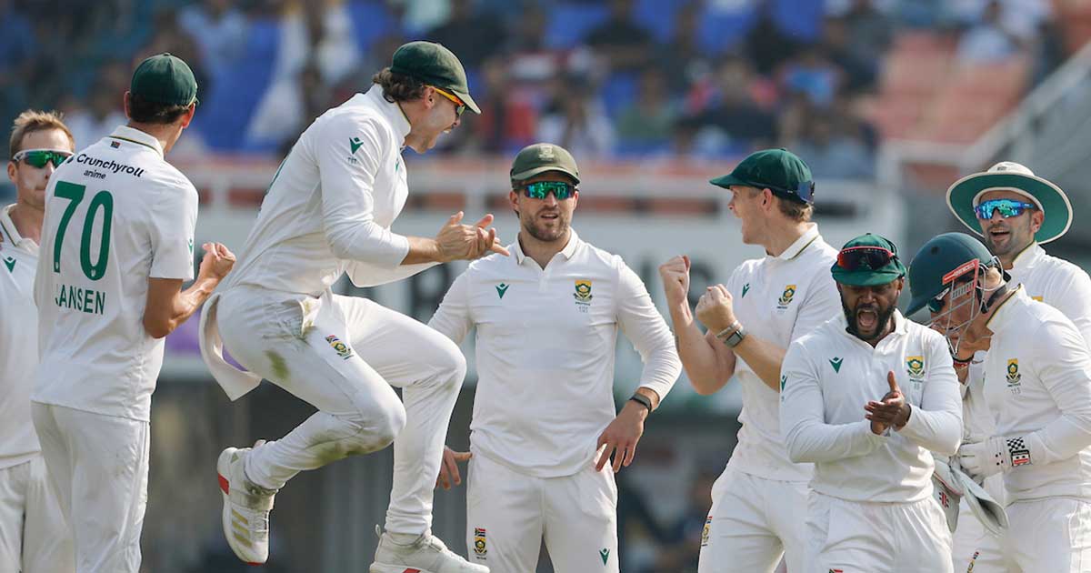 হারমার-মহারাজদের ঘূর্ণিতে ১২৩ রানের লক্ষ্য তাড়ায় মাত্র ৯৩ রানেই গুটিয়ে গেছে ভারত। এর মধ্য দিয়ে ভারতের মাটিতে প্রোটিয়াদের টেস্ট জিততে দীর্ঘ ১৫ বছরের অপেক্ষা শেষ হয়েছে। এর আগে ২০১০ সালের ফেব্রুয়ারিতে নাগপুর টেস্টে শেষবার টেস্ট জিতেছিল গ্রায়েম স্মিথের নেতৃত্বাধীন দক্ষিণ আফ্রিকা। এমন দিন দেখতে টেম্বা বাভুমাদের লম্বা সময় অপেক্ষায় থাকতে হলো।