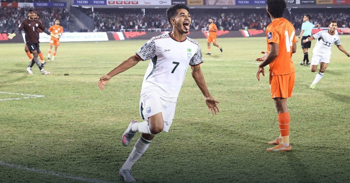 দীর্ঘ ২২ বছর পর, ভারতকে হারিয়ে ইতিহাস রচনা করল বাংলাদেশ। এএফসি এশিয়ান কাপের বাছাইপর্বে ভারতকে ১-০ গোলে পরাজিত করে বাংলাদেশের ফুটবল দল তাদের দীর্ঘদিনের শত্রু ভারতকে পরাজিত করার এক স্মরণীয় মুহূর্ত সৃষ্টি করল।