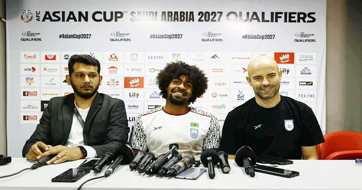 কয়েক সেকেন্ডের মধ্যেই পুরো হলে চাঞ্চল্য ফিরে এল। হাসিমুখে প্রথমবারের মতো ম্যাচ-পরবর্তী সম্মেলনে এলেন হামজা। তিনি শুরুতেই দলের সবার ত্যাগ ও ঐক্যের কথা তুলে ধরে বললেন, আমি তো ক্যাম্পে যোগ দিয়েছি একেবারে শেষে। কোচ, কোচিং স্টাফ আর খেলোয়াড়রা প্রায় ২৩ দিন ধরে এখানে আছে ৫০০ ঘণ্টারও বেশি সময়। পরিবার থেকে দূরে, হোটেলে থেকে দেশের জন্য কঠোর পরিশ্রম করেছে সবাই। আলহামদুলিল্লাহ, আজ তার ফল মিলেছে।