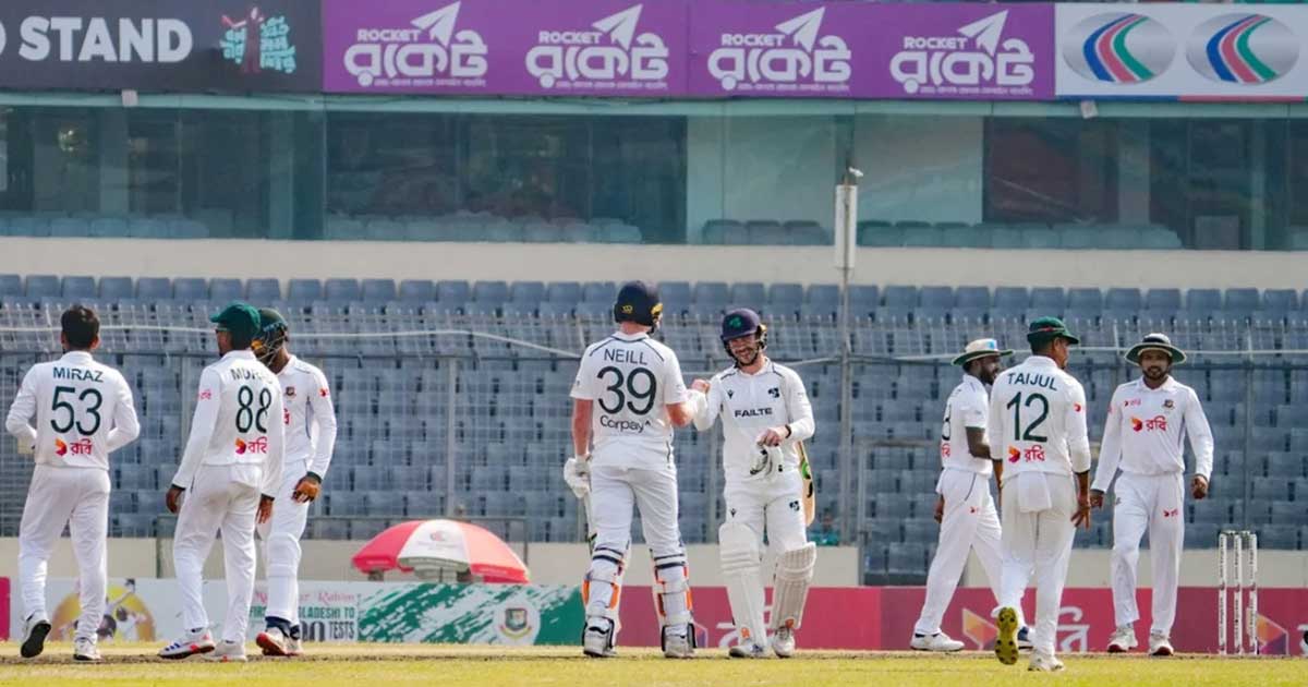 নতুন বল পেয়ে আক্রমণে আসেন বাংলাদেশি পেসার খালেদ আহমেদ। অন্যপ্রান্তে চলছিল স্পিন, তবে তারা ভাঙতে পারছেন না ক্যাম্ফার-গ্যাভিন হোয়ের জুটি। অথচ সাড়ে ১১টায় মধ্যাহ্ন বিরতি দেওয়ার কথা থাকলেও, ম্যাচ শেষ হয়ে যাবে এই আশায় সেই সময় পিছিয়ে খেলা চলতে থাকে। শেষ পর্যন্ত হতাশই করেছেন ক্রিজে থাকা দুই আইরিশ ব্যাটার। বাড়তি ২০ মিনিট পর দেওয়া হয় বিরতি। এখনও ক্যাম্ফার ৬৩ ও হোয়ে ১৮ রানে অপরাজিত আছেন।
