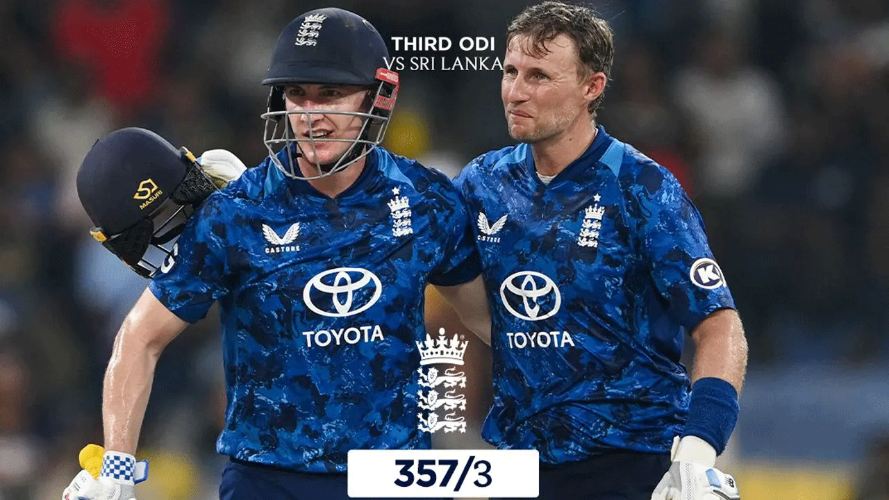 কলম্বোতে সিরিজের তৃতীয় ওয়ানডেতে স্বাগতিক শ্রীলঙ্কাকে ৩৫৮ রানের লক্ষ্য ছুড়ে দেয় ইংল্যান্ড। ১-১ সমতার সিরিজ জিততে হলে রেকর্ড ভাঙতে হবে শ্রীলঙ্কাকে। রুটের অপরাজিত ১১১ রানের ইনিংসের সঙ্গে ব্রুক খেলেন ১৩৬ রানের হার না মানা ইনিংস। শ্রীলঙ্কার মাটিতে কখনো তিনশ ছুঁতে না পারা ইংল্যান্ড এবার সাড়ে তিনশ বেশি ইনিংস দাঁড় করিয়েছে।