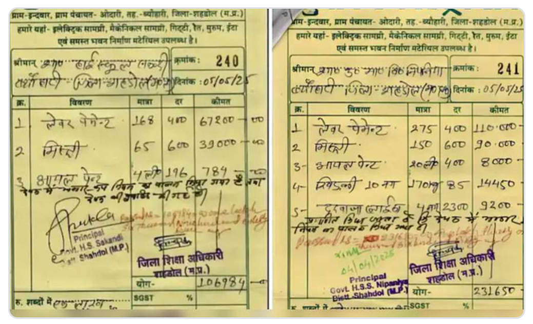 ভারতীয় সংবাদমাধ্যম আনন্দবাজার পত্রিকা এক প্রতিবেদনে জানায়, শাহদোল জেলার সাকান্দি গ্রামের একটি সরকারি স্কুলে মাত্র একটি দেয়াল রঙ করতে চার লিটার রঙ, ২৩৩ জন মিস্ত্রি এবং ১ লাখ ৭ হাজার রুপি খরচ দেখানো হয়েছে। আর নিপানিয়া গ্রামের আরেকটি স্কুলে চারটি দরজা ও ১০টি জানালায় রঙের জন্য দেখানো হয়েছে ২০ লিটার রঙ, ৪২৫ জন মিস্ত্রি ও ২ লাখ ৫০ হাজার রুপি।