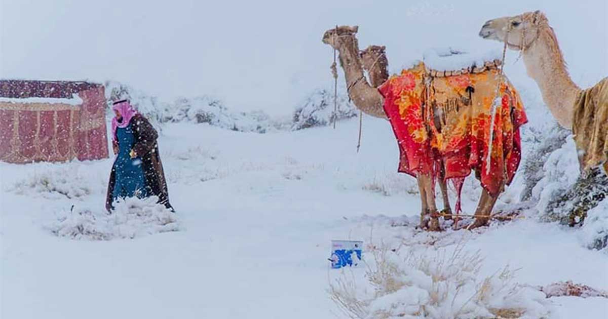 তপ্ত বালুরাশি আর ধূ-ধূ মরুভূমির জন্য পরিচিত মধ্যপ্রাচ্যের দেশ সৌদি আরব কিন্তু সেই মরুর বুকজুড়ে শ্বেত-শুভ্র তুষার। যেন কল্পরাজ্যের কোনো চিত্র ধরা দিয়েছে বাস্তবতায়।