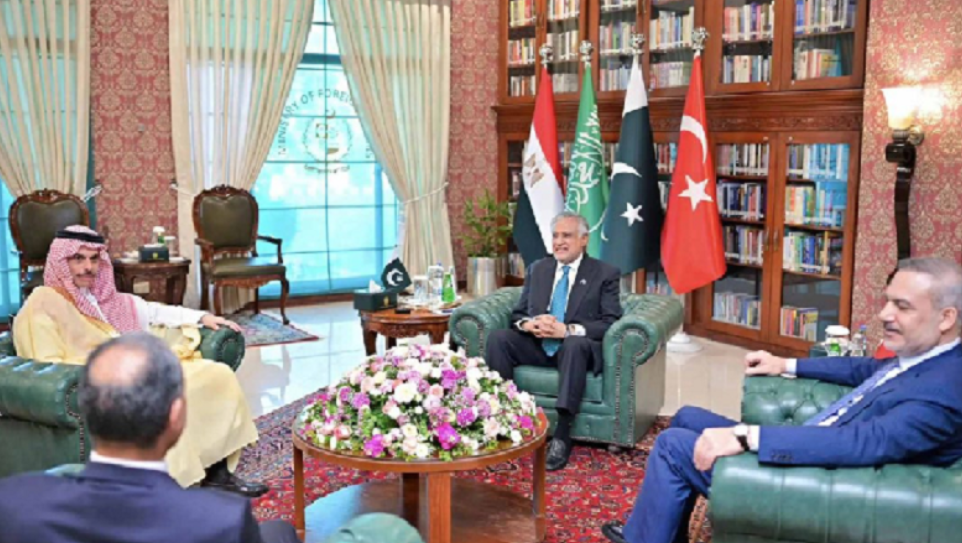 রাষ্ট্রীয় সম্প্রচারমাধ্যম পাকিস্তান টেলিভিশন-এর ফুটেজে দেখা গেছে, পাকিস্তানের পররাষ্ট্রমন্ত্রী ইসহাক দার তুরস্কের হাকান ফিদান, মিসরের বদর আবদেল আতি এবং সৌদি আরবের প্রিন্স ফয়সাল বিন ফারহান-কে মন্ত্রণালয়ে স্বাগত জানান।