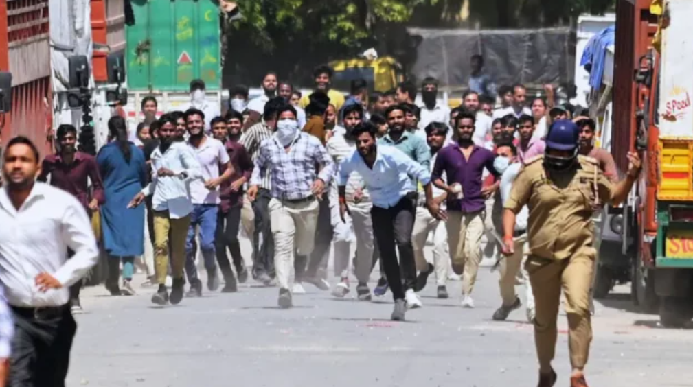 সরকার পক্ষ থেকে উত্তরপ্রদেশের শ্রমমন্ত্রী অনিল রাজভর এই অস্থিরতার পেছনে বিদেশের হাত রয়েছে বলে অভিযোগ করেছেন। তার দাবি অনুযায়ী, এই বিক্ষোভের পেছনে পাকিস্তানি হ্যান্ডলারদের গভীর ষড়যন্ত্র রয়েছে এবং সাধারণ শ্রমিকদের অরাজকতায় উসকানি দেওয়া হচ্ছে।